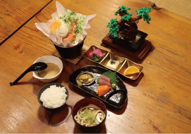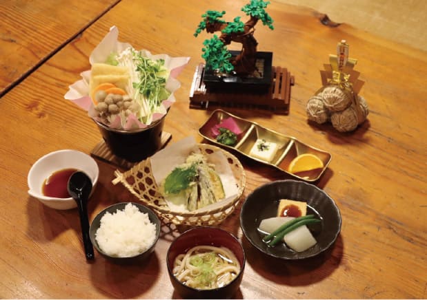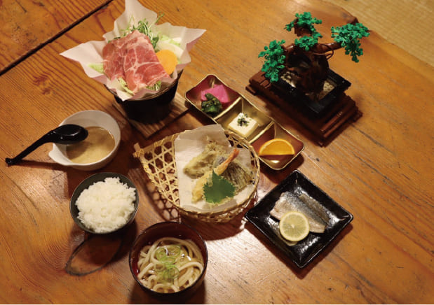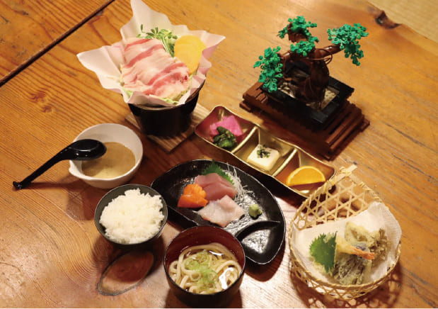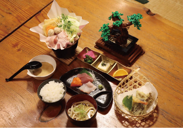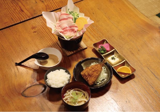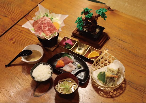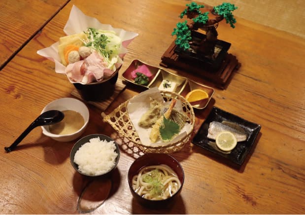 和食処 富士の縁 山中湖の澄んだ空気の中で、 香ばしい天ぷら、旨みを素直に伝える刺身、 体を温める鍋料理⸺ ひと品ひと品が、静かに、しかし確かに心に響きます。 旅の途中でふと腰を下ろし、 自然の静けさとともに味わう時間。 「良きものを、良きままに」 整えた膳を、どうぞゆっくりとお楽しみください。 メニュー 牛鍋 Gyu 粋 Iki 1,800円(税別) ・アジフライ ・三点盛 (漬物、豆腐、フルーツ) ・ご飯 ・うどん 雅 Miyabi 2,300円(税別) ・天ぷら四種盛り ・焼き魚 ・三点盛 (漬物、豆腐、フルーツ) ・ご飯 ・うどん ※前日予約不可 極 Kiwami 2,900円(税別) ・刺身三種盛 ・天ぷら四種盛 ・三点盛 (漬物、豆腐、フルーツ) ・ご飯 ・うどん ※前日予約不可 豚鍋 Buta 粋 Iki 1,500円(税別) ・アジフライ ・三点盛 (漬物、豆腐、フルーツ) ・ご飯 ・うどん 雅 Miyabi 2,000円(税別) ・天ぷら四種盛り ・焼き魚 ・三点盛 (漬物、豆腐、フルーツ) ・ご飯 ・うどん ※前日予約不可 極 Kiwami 2,600円(税別) ・刺身三種盛 ・天ぷら四種盛 ・三点盛 (漬物、豆腐、フルーツ) ・ご飯 ・うどん ※前日予約不可 鶏鍋 Tori 粋 Iki 1,300円(税別) ・アジフライ ・三点盛 (漬物、豆腐、フルーツ) ・ご飯 ・うどん 雅 Miyabi 1,800円(税別) ・天ぷら四種盛り ・焼き魚 ・三点盛 (漬物、豆腐、フルーツ) ・ご飯 ・うどん ※前日予約不可 極 Kiwami 2,400円(税別) ・刺身三種盛 ・天ぷら四種盛 ・三点盛 (漬物、豆腐、フルーツ) ・ご飯 ・うどん ※前日予約不可 海鮮 Kaisen 粋 Iki 1,900円(税別) ・海鮮鍋 (エビ、ホタテ、白身) ・アジフライ ・三点盛 (漬物、豆腐、フルーツ) ・ご飯 ・うどん 雅 Miyabi 2,800円(税別) ・海鮮鍋 (エビ、ホタテ、白身) ・鮑 + 刺身二種盛 ・三点盛 (漬物、豆腐、フルーツ) ・ご飯 ・うどん ※前日予約不可 極 Kiwami 3,500円(税別) ・海鮮鍋 (エビ、ホタテ、白身) ・蟹脚 ・アジフライ ・三点盛 (漬物、豆腐、フルーツ) ・ご飯 ・うどん ※前日予約不可 極上 Gokujo 3,900円(税別) ・海鮮鍋 (エビ、ホタテ、白身) ・蟹脚 ・鮑 + 刺身二種盛 ・三点盛 (漬物、豆腐、フルーツ) ・ご飯 ・うどん ※前日予約不可 定食 Teishoku 焼き魚定食 Yakizakana 1,200円(税別) ・焼きサバ ・三点盛 (漬物、豆腐、フルーツ) ・ご飯 ・味噌汁 ・うどん 照り焼き定食 Teriyaki 1,200円(税別) ・鶏の照り焼き ・三点盛 (漬物、豆腐、フルーツ) ・ご飯 ・味噌汁 ・うどん トンカツ定食 Tonkatsu 1,600円(税別) ・トンカツ ・三点盛 (漬物、豆腐、フルーツ) ・ご飯 ・味噌汁 ・うどん ハンバーグ定食 Hamburger steak 1,800円(税別) ・ハンバーグ ・三点盛 (漬物、豆腐、フルーツ) ・ご飯 ・味噌汁 ・うどん ベジタリアン対応メニュー Vegetarian ベジタリアンメニュー Vegetarian 2,000円(税別) ・野菜鍋 ・野菜天ぷら四種盛 ・大根と油揚げの煮物 ・三点盛 (漬物、豆腐、フルーツ) ・ご飯 ・うどん 特別メニュー Special アクセス情報 和食処 富士の縁は、 県道沿いに位置する、立ち寄りやすい和食処です。 〈席数〉 1F:66名 2F:40名 合計:106名 当店は完全予約制となっております。 当日予約、前日予約に関してはメニューによってお断りする場合がございます。 予め、ご了承ください。 営業時間 11:00~15:00 〒401-0501 山梨県南都留郡山中湖村山中989-3 グーグルマップを開く お問い合わせ 電話・WeChat・LINE・お問い合わせフォームからお気軽にご連絡ください WeChat LINE お名前 メールアドレス 電話番号 お問い合わせ内容 送信する